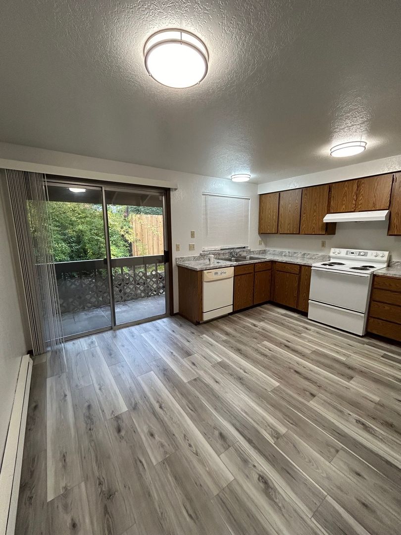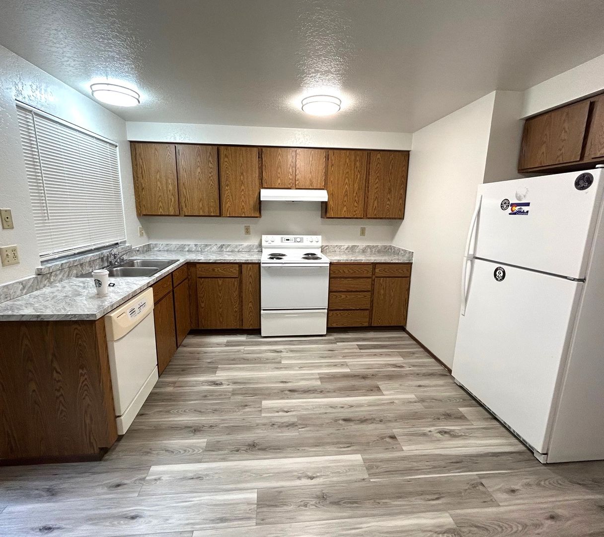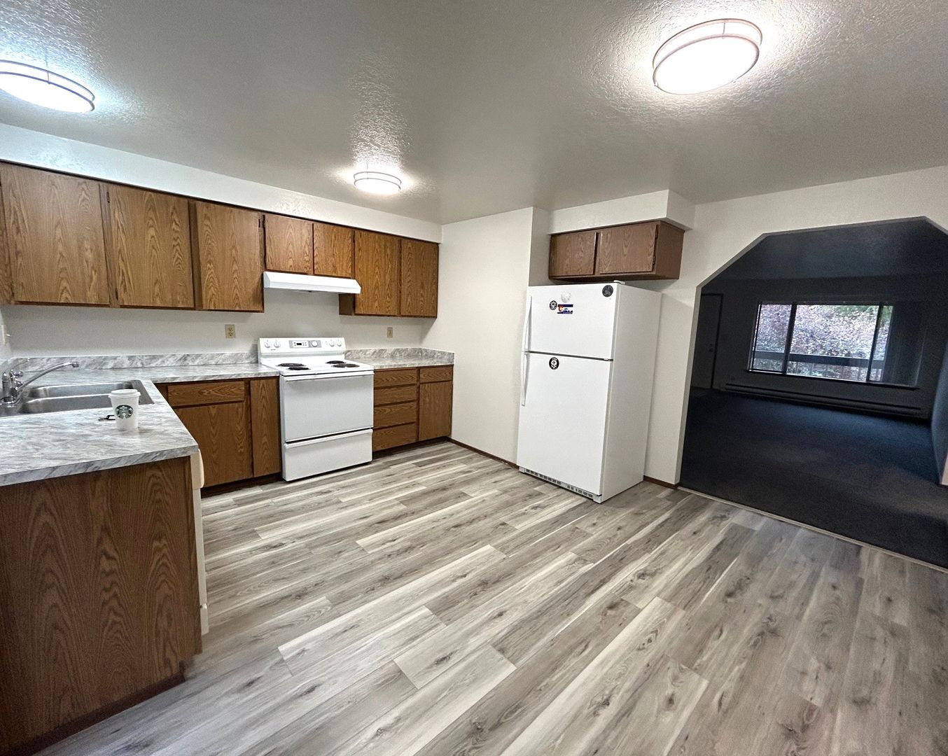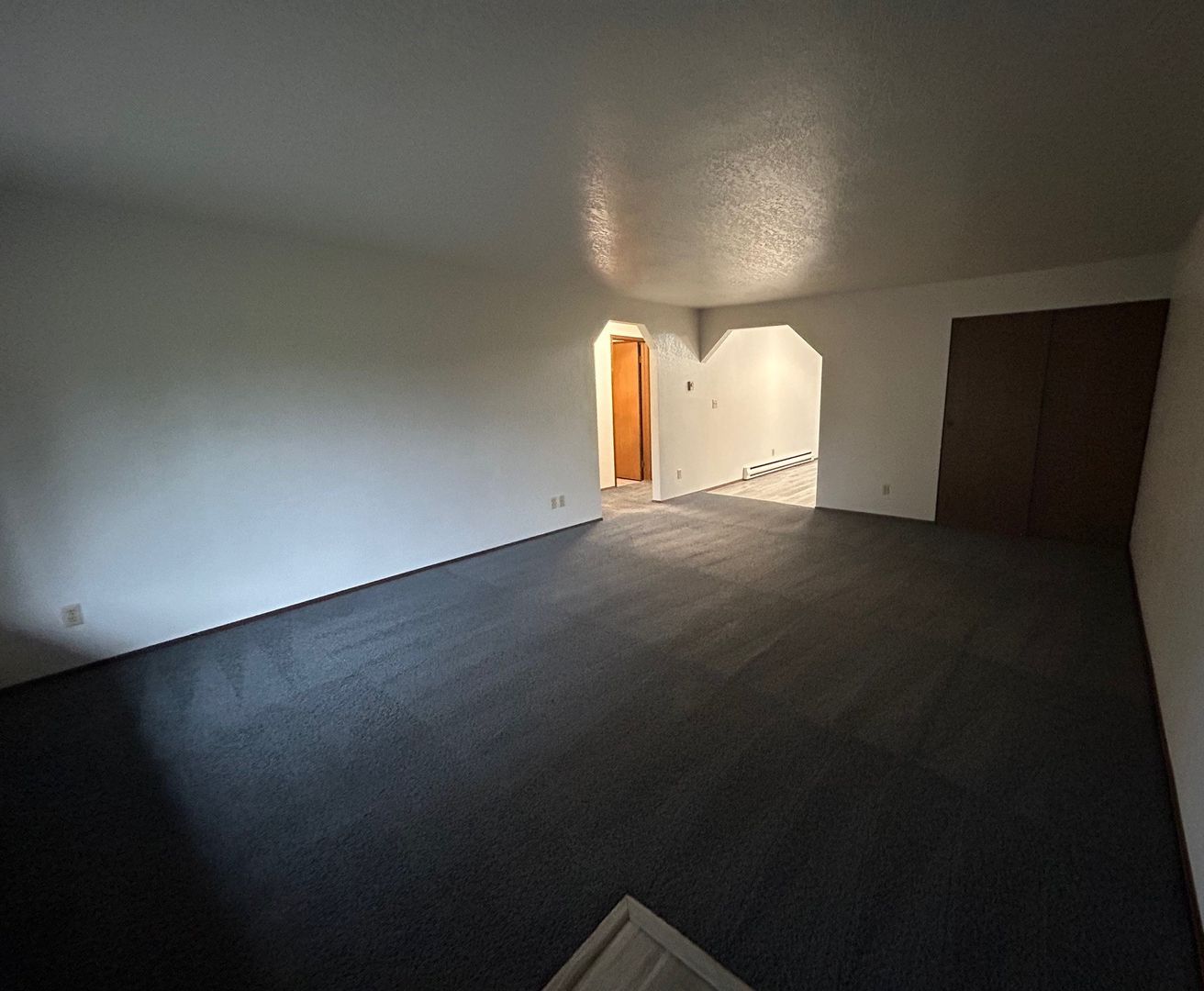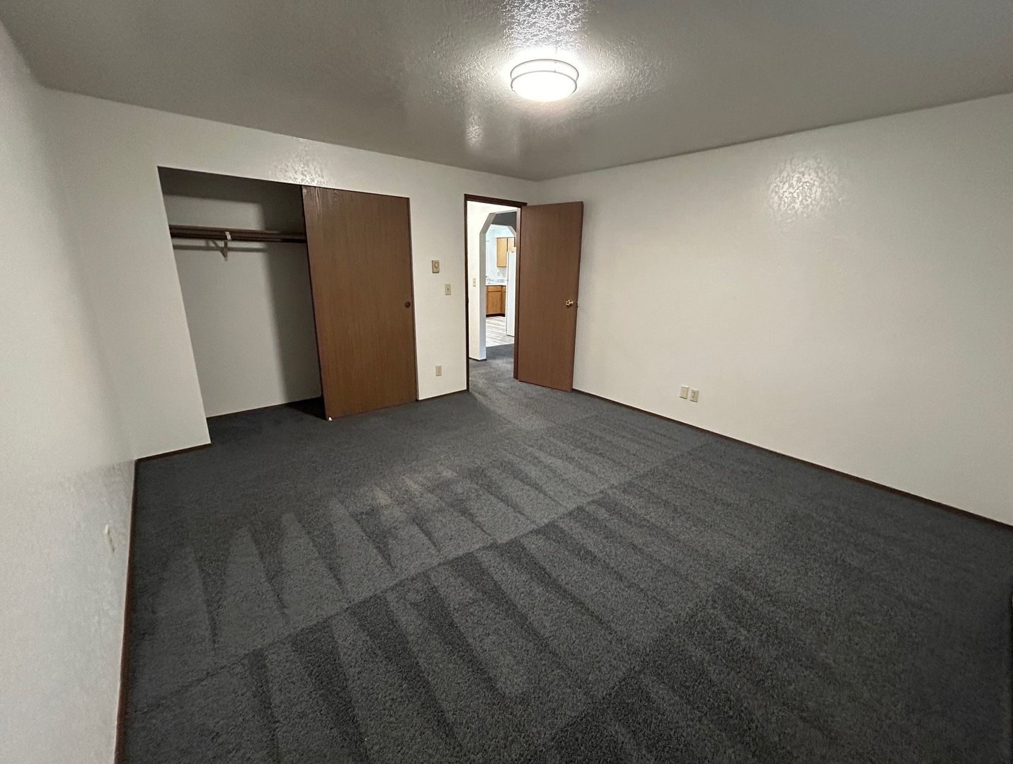 This quiet spacious 2 bedroom 1 bath apartment tucked back in town yet still close to everything has fresh paint and updated flooring & countertops. Large storage unit. Water/Sewer/Garbage included. Large patio off the back, Coin operated Laundry on-site.